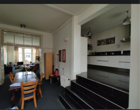 Het is een mooi groot huis met een gemeenschappelijke moderne keuken, grote woonkamer met eettafel, banken en beamer, 2 toiletten en een badkamer. Elke week komt de schoonmaakster langs. Ook hebben we een fijne voor- en achtertuin met veel zon. Het ligt op 5 minuten lopen van station en centrum, en 1 minuut van de Jumbo. Je woont met 5 andere huisgenoten, zowel mannen als vrouwen in de leeftijd van 24-30 jaar. Kosten bedragen 460 euro inclusief schoonmaakster!