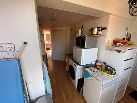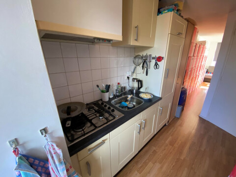 Het appartement is te bereiken via een gedeelde entree en bevindt zich op de tweede verdieping. Bij binnenkomst kom je in de open keuken, die is uitgerust met een gasfornuis en een ingebouwde koelkast. Verder beschikt het appartement over een aparte toiletruimte en een badkamer met douche en wastafel. Ook is er een ruim balkon aanwezig, ideaal voor buitenmomenten.